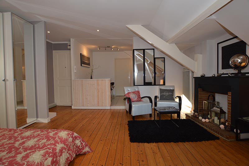 Rue Joseph Sauveur, dans une rue calme, à sens unique, au 3ème et dernier étage d’un immeuble de 1889 (accès avec digicode), l’appartement de 40m2 vous séduira par son esprit loft, cheminée, parquet bois et sa décoration contemporaine.